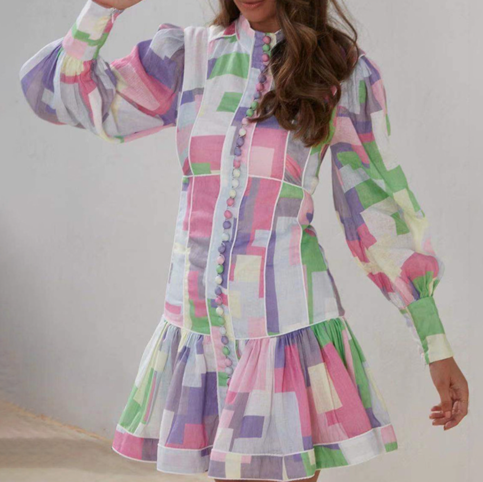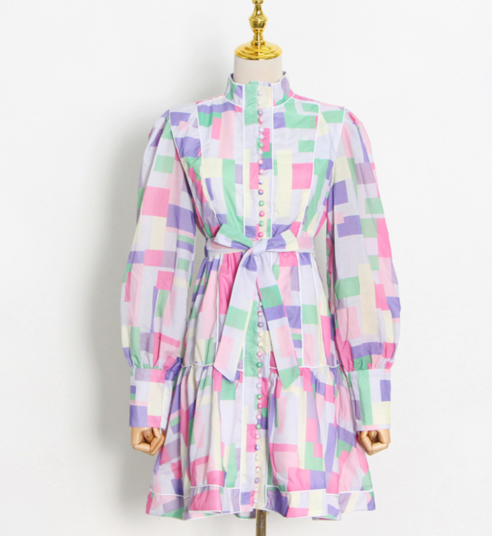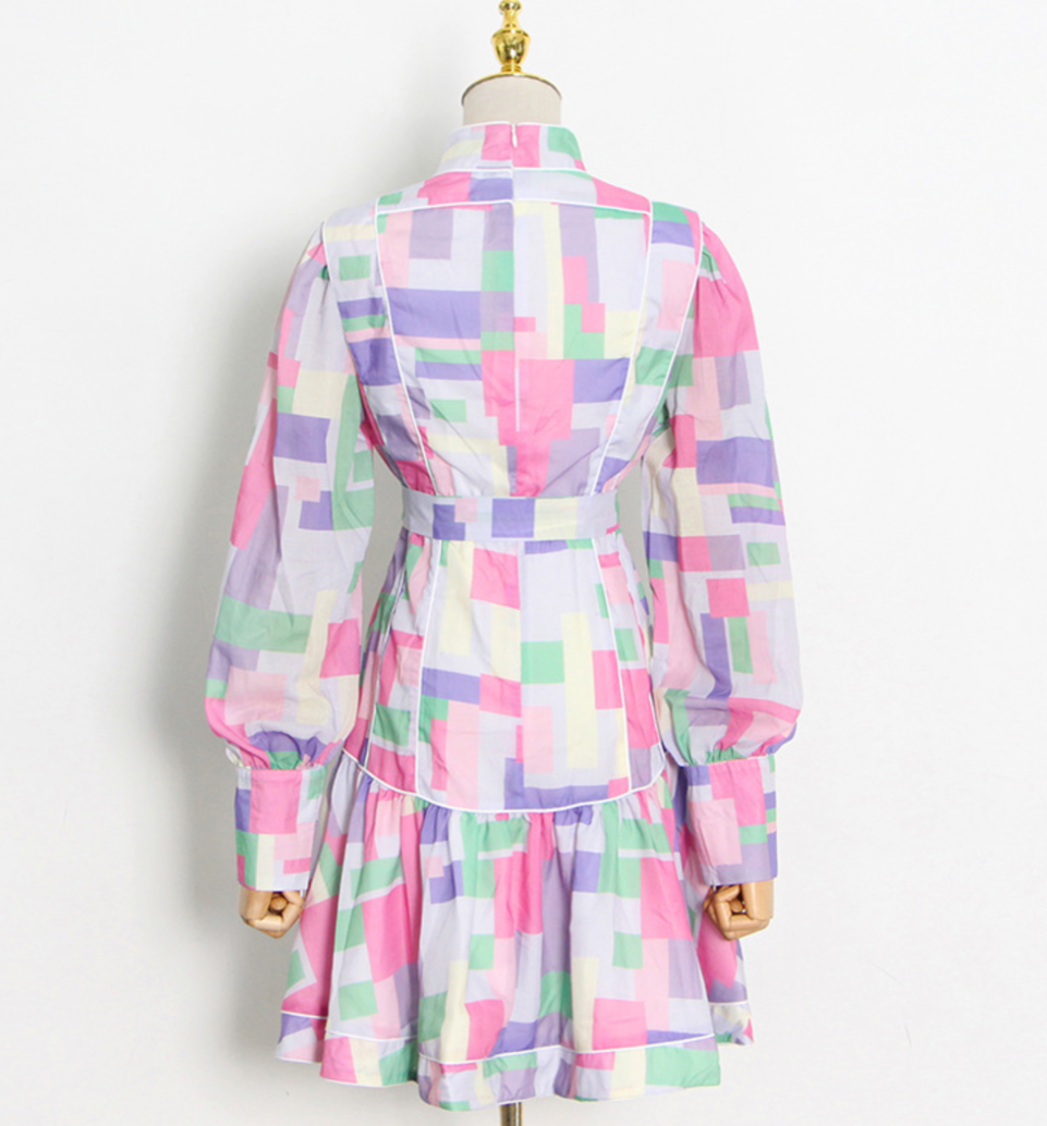 パステルカラー×モザイクデザインの個性派ワンピース